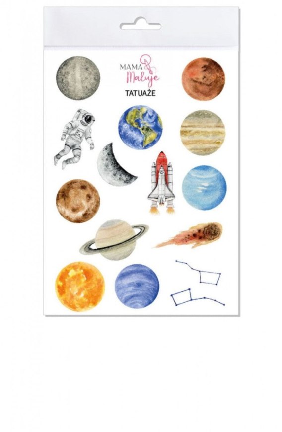 Wszystkie planety zostały przedstawione w sposób realistyczny. Do tego astronauta, rakieta, księżyc, kometa i gwiazdozbiory.