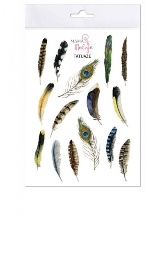 Na arkuszu tatuaży znajdują się pióra takich ptaków, jak: