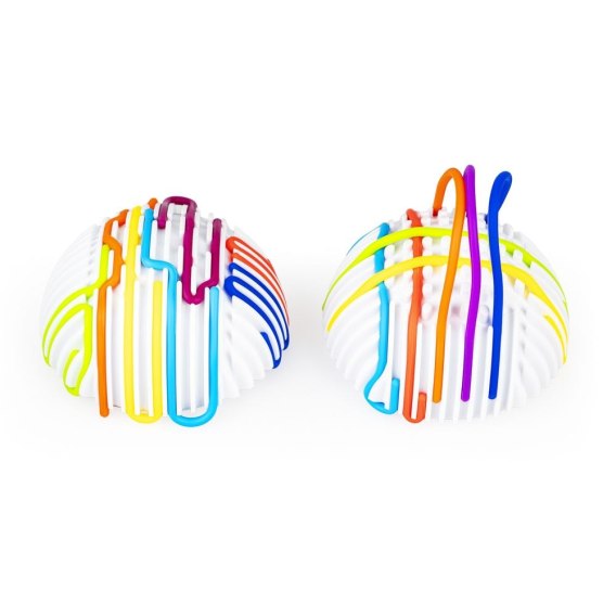 Piłeczka i 20 kolorowych linek to przepis na kreatywną zabawę! Twórz wężykowe labirynty, przeplatając linki pomiędzy wypustkami, ucząc się przy tym zręczności i rozwijając wyobraźnię! Baza do zaplatania ma kształt kuli, którą można rozłożyć na dwie odrębne półkule, dzięki czemu z zabawki może równocześnie korzystać dwoje dzieci. Produkt przeznaczony jest dla dzieci od 3 roku życia. Cechy produktu: - zabawka ma kształt kuli (do rozłożenia na dwie półkule - możliwość zabawy solo lub w duecie); - baza do zaplatania (kula) wyposażona jest w tunele do przeplatania linek i wypustki do zmiany kierunku przeplatanki; - 20 kolorowych linek w zestawie; - wiek: 3+.