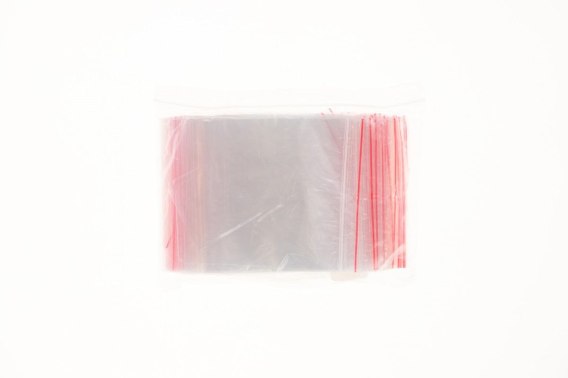 wieszakach. Fałda oznaczona jest czerwoną linią, która pomaga w otwieraniu woreczka.
