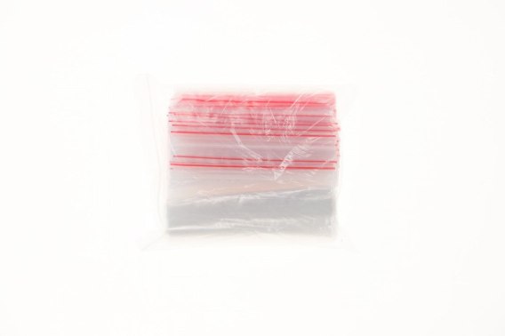 wieszakach. Fałda oznaczona jest czerwoną linią, która pomaga w otwieraniu woreczka.