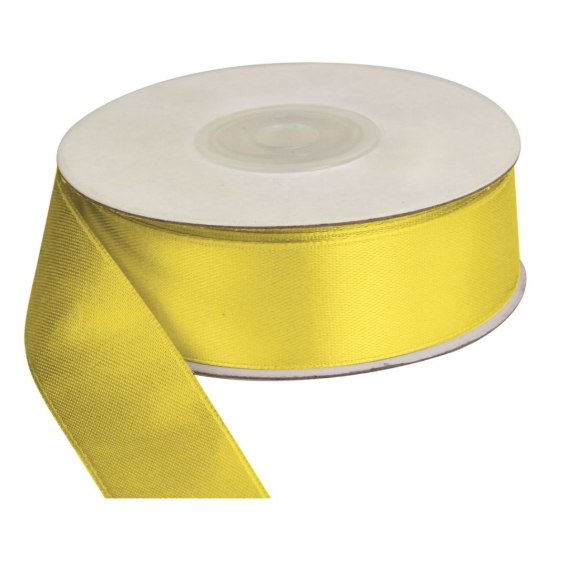 Wstążka satynowa na szpuli, kolor: żółta, 25 mm x 25 m.