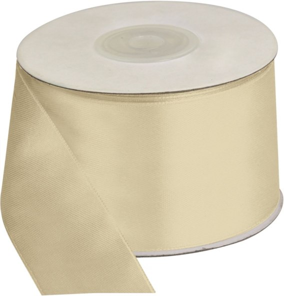 Wstążka satynowa na szpuli. Kolor: kremowa, 50 mm x 25 m.