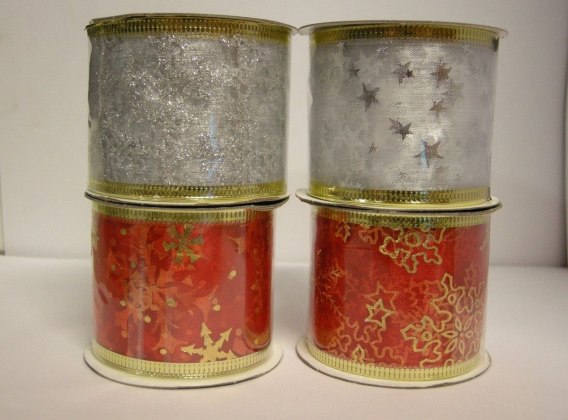 Wstążka ozdobna H035 bożonarodzeniowa o rozmiarze 50mm x 5m. Dostępna w kolorze białym oraz czerwonym. Wysyłana losowo!