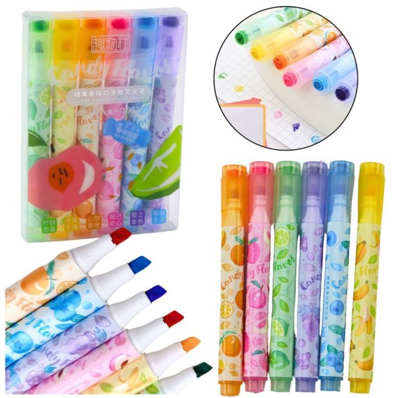 Kolorowe Zakreślacze Owocowe z Pieczątką - Zestaw 6 Sztuk ⭐