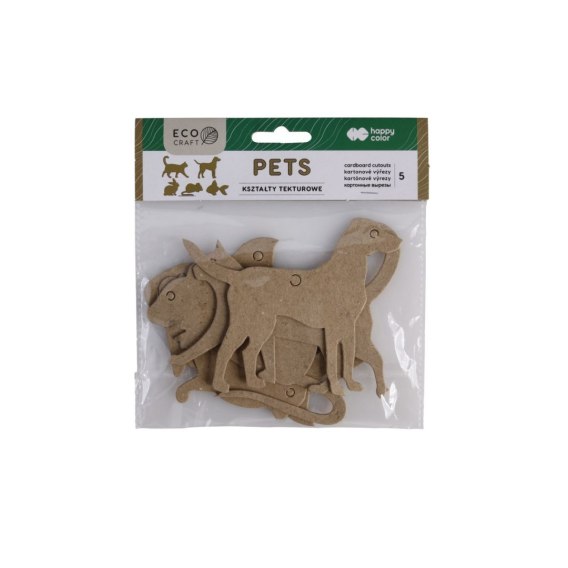 Zabawa i nauka. Możliwość zawieszenia i tworzenia dekoracji przestrzennych. Umieszczone na patyczku można wykorzystać w teatrzyku. Tektura o grubości ok. 2 mm. Naturalne kształty postaci zwierząt domowych: kot, pies, królik, mysz, ryba – polecamy do zdobienia blok z motywami Animals. Wielkość elementu ok. 6 x 10 cm. 5 kształtów w opak.