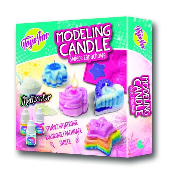 Zestaw Modeling Candle pozwala na stworzenie własnych pachnących, kolorowych świec. Zestaw zawiera: woskową bazę, foremkę, farbki w 3 kolorach, aromat karmelowy, knot, instrukcję. Produkt przeznaczony dla dzieci w wieku 6+