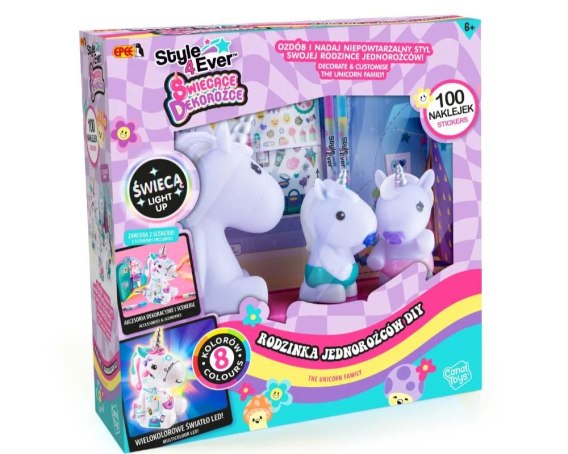 Świecące Dekorożce w wersji rodziny jednorożców to nie tylko urocze figurki, ale także źródła przyjemnego światła, które nadadzą magicznego blasku każdemu wnętrzu. Ten supermodny zestaw DIY łączy w sobie zabawę kreatywną i kolekcjonerską, oferując możliwość stworzenia własnej, spersonalizowanej dekoracji. Zawartość opakowania obejmuje wszystko, co potrzebne do zabawy: 1 świecącego Dekorożca-mamę, 2 świecące w ciemności Dekorożce-dzieci, 2 arkusze brokatowych naklejek, 2 mazaki oraz 2 szablony do wycięcia. Dzięki temu, dzieci mogą wyrazić swoją kreatywność, ozdabiając Dekorożce według własnego pomysłu. Urocze Dekorożce świecą w 8 kolorach, tworząc niepowtarzalny, bajkowy klimat. To nie tylko świetna zabawa w domu, ale także doskonały prezent dla miłośników DIY i dekoracji. Produkt wymaga baterii, które są już zawarte w zestawie, dzięki czemu można od razu cieszyć się magiczną atmosferą, którą stworzy ta urocza rodzina jednorożców.