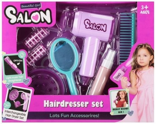 Zalety produktu: Zalety produktu: rozwija kreatywność dziecka, dziecko może poczuć się jak mała Księżniczka. Zestaw Piękności Fryzjer to podstawowa pozycja w kolekcji zabawek każdej dziewczynki, wchodzącej coraz większymi krokami w życie. Akcesoria MEGA CREATIVE wydobędą z niej prawdziwą młodą damę! Zawartość zestawu: suszarka do włosów + akcesoria, 1x grzebień, 1x lusterko, 2x wałek do włosów, 1x spray do włosów. Wszystkie produkty wykonane z plastiku i są imitacją prawdziwych. Wymiary/waga/baterie: wymiar opakowania (dł. x wys. x gł.) [cm]: 33x26x7, waga produktu w opakowaniu [kg]: 0,17 kg, wymiar produktu )dł. x wys. x gł.) (cm) suszarka 9x15x5, waga produktu bez opakowania [kg]: 0,39 kg, Wymaga zasilania bateriami -2xAAA LR03- nie załączonymi do zestawu . Zestaw przeznaczony dla dzieci w wieku: 3+ . Zestaw pakowany w kartonik z okienkiem. W kartonie zbiorczym po 24/48 szt.