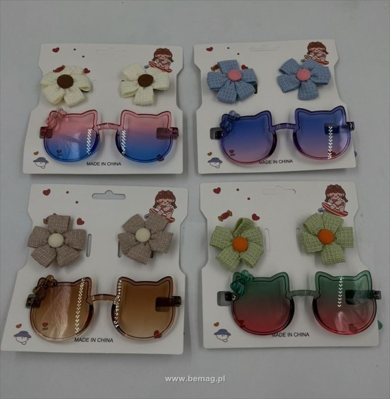 Zestaw dla dziewczynki spinki kwiatki+okulary przeciwsłoneczne kotek ombre 91050