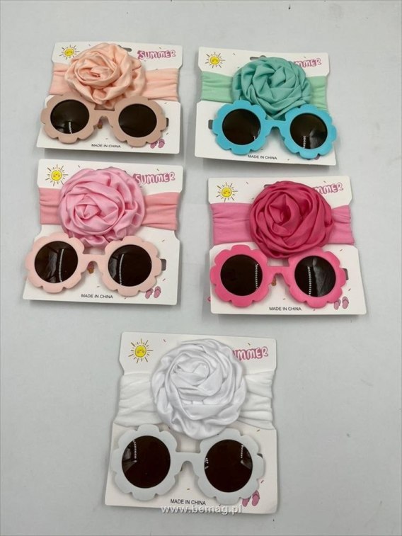 Zestaw dla dziewczynki opaska z różą+okulary przeciwsłoneczne kwiatki 91054