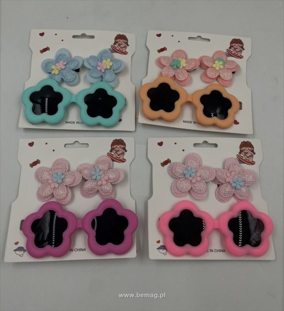 Zestaw dla dziewczynki spinki kwiatki+okulary przeciwsłoneczne kwiatki 91055