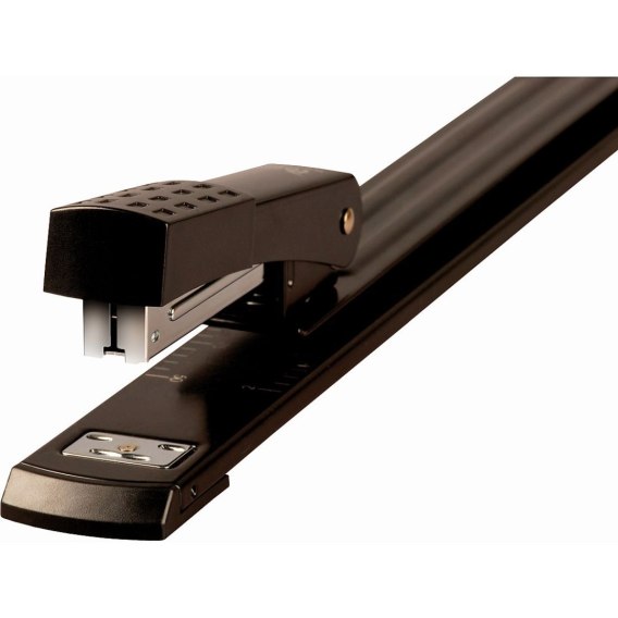 Specjalistyczny zszywacz długoramienny metalowy. Zszywanie zamknięte i otwarte. Dodatkowo wyposażony w skalę centymetrową oraz calową. Dostosowany do zszywek o rozmiarach 24/6 - 26/6 mm. Zszywa do 25 kartek. Głębokość wsuwania kartek: 310 mm. Pojemność magazynka:100 zszywek.