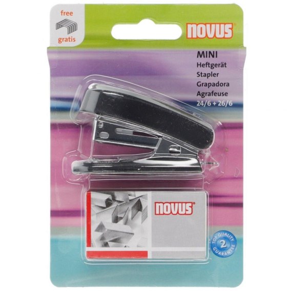 Kompaktowy zszywacz sprawdzi się jako kompan w szkole i w podróży. Nowoczesny design i żywe, atrakcyjne kolory. Zszywacz wykonany z metalu w obudowie z tworzywa sztucznego. Umożliwia permanentne zszywanie i przybijanie. Wyposażony w zintegrowany rozszywacz. Kolor czarny. Opakowanie blistrowe, zawiera zszywki 24/6.